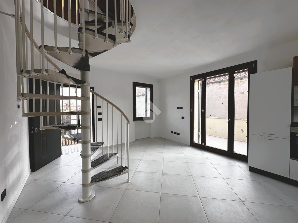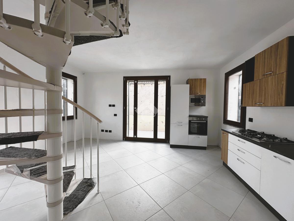 Dal soggiorno, una comoda scala a chiocciola permette l’accesso al sottotetto abitabile open space, dotato di finestre e lucernari, secondo bagno con finestra e vasca idromassaggio, oltre agli attacchi per lavatrice.
