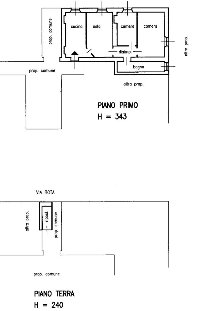 Completano la proprietà un piccolo sottoscala aperto, dotato di cancelletto basso, posto al piano terra. L'immobile è completamente da ristrutturare.