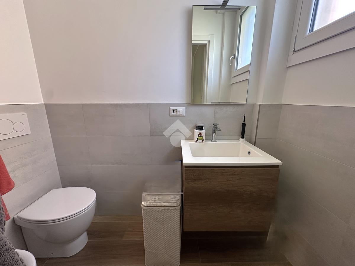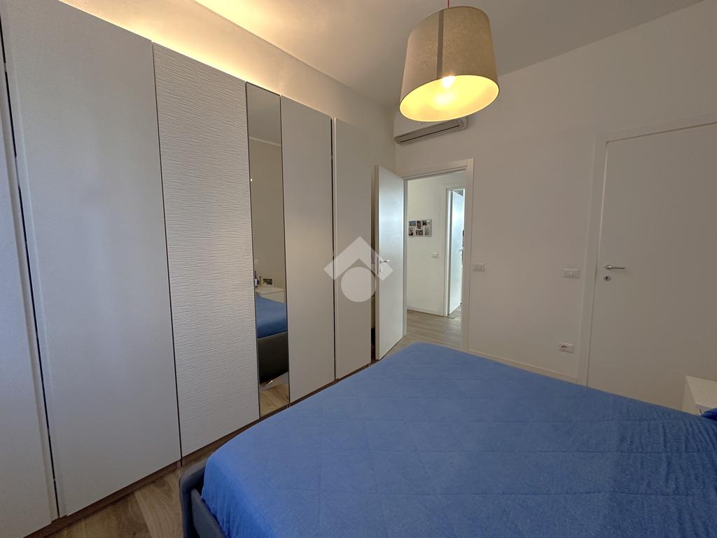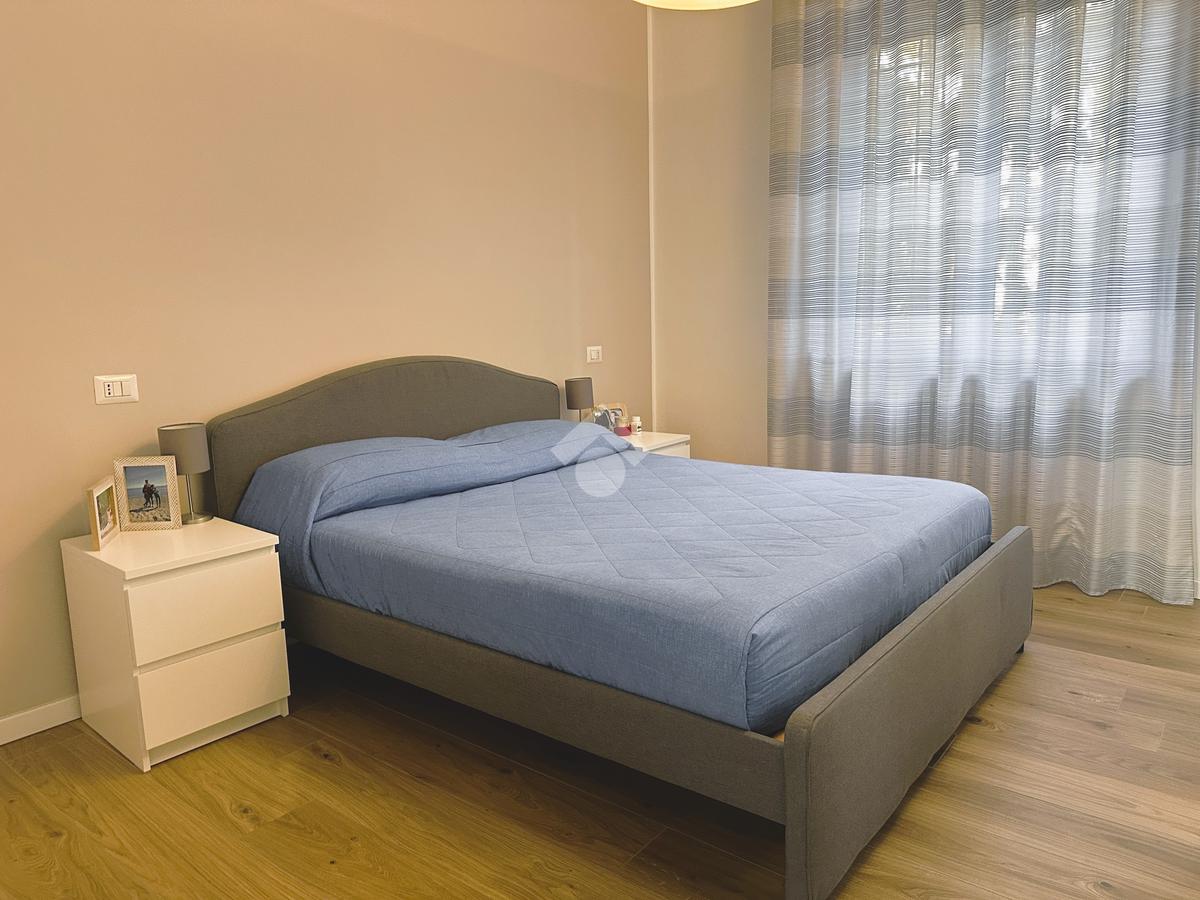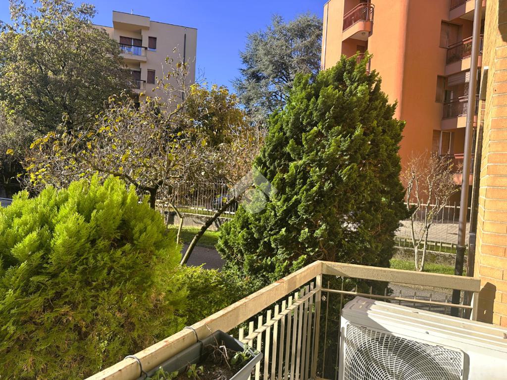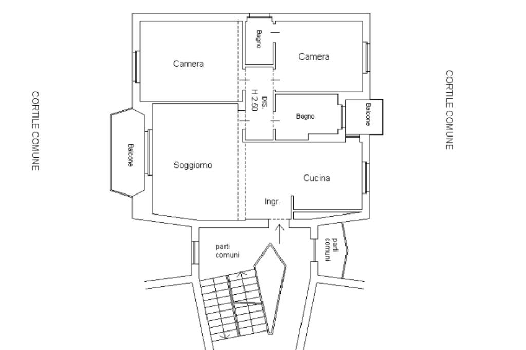 L’immobile si apre su un comodo soggiorno con accesso al balcone, collegato a una funzionale cucina a vista anch’essa servita da balcone. La zona notte è composta da un disimpegno, una spaziosa camera matrimoniale dotata di bagno privato finestrato (tre pezzi, senza doccia), una seconda camera doppia e un secondo bagno completo di doccia e finestra.