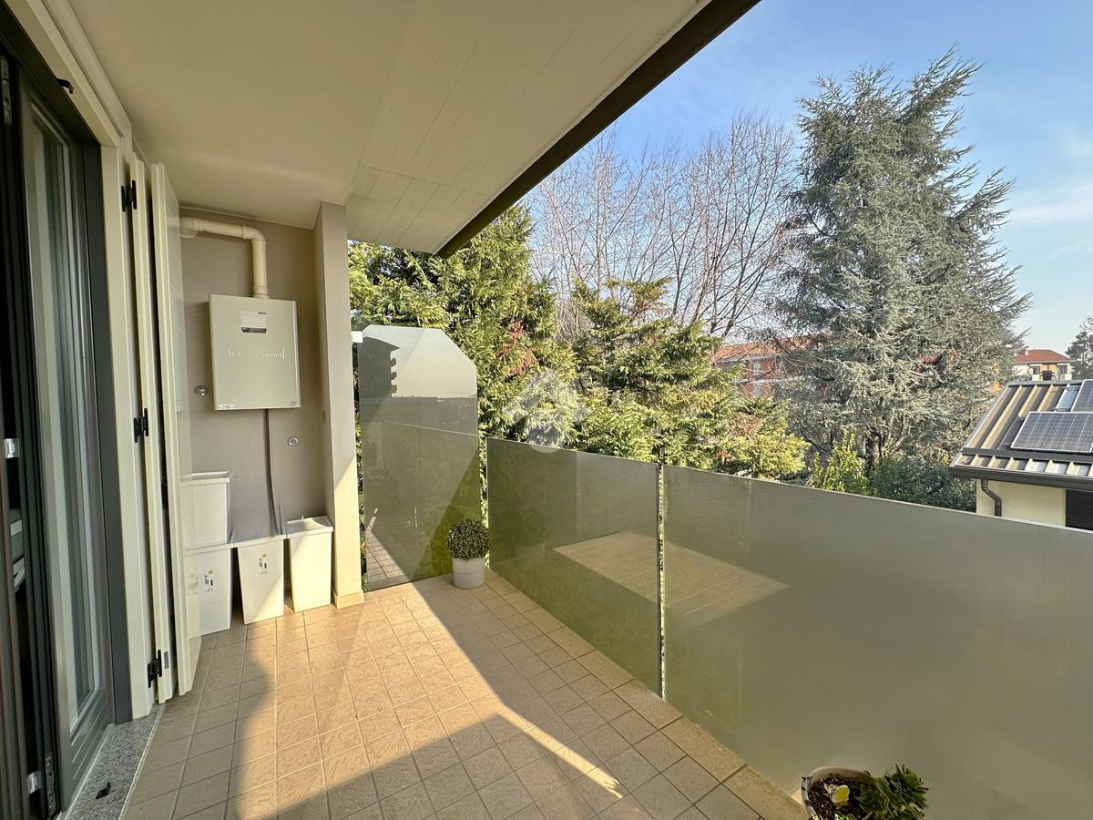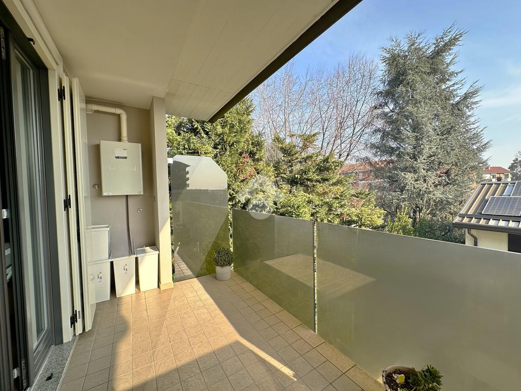 Vimercate Centro. In recente palazzina, posizione tranquilla e non direttamente su strada, proponiamo in vendita un appartamento ideale per chi desidera vivere in centro, senza rinunciare a privacy e comfort. L’ingresso è diretto sul luminoso soggiorno con ampia zona cottura, reso particolarmente piacevole dalla presenza di un terrazzino ben vivibile. Un comodo disimpegno conduce alla zona notte, composta da camera matrimoniale con balcone e da una spaziosa camera doppia con ulteriore terrazzino. L’abitazione dispone inoltre di due bagni entrambi finestrati, completi di vasca e doccia, oltre ad un pratico ripostiglio.